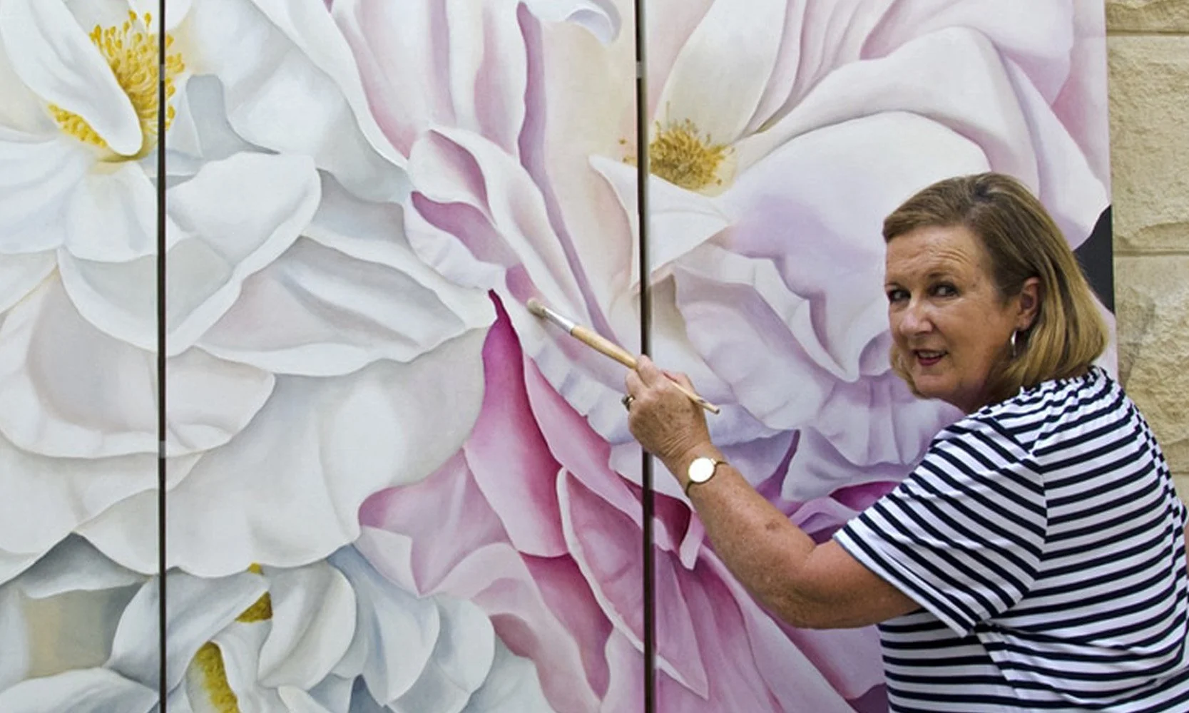 Her work centres on three themes: sculptural flowers, coastal scenes, and Peninsula landscapes. Influenced by childhood summers in Sorrento and her life on the Mornington Peninsula, each piece reflects a sense of calm, place, and lived experience.